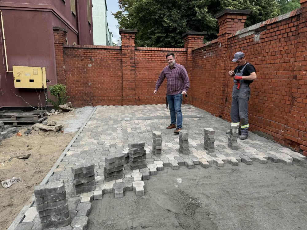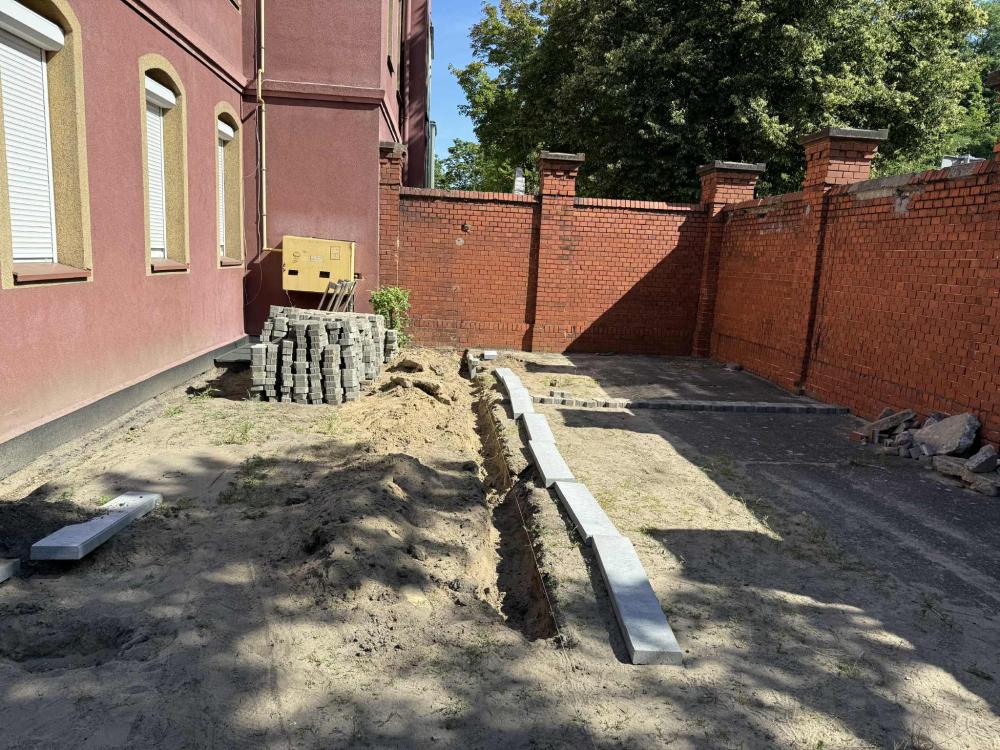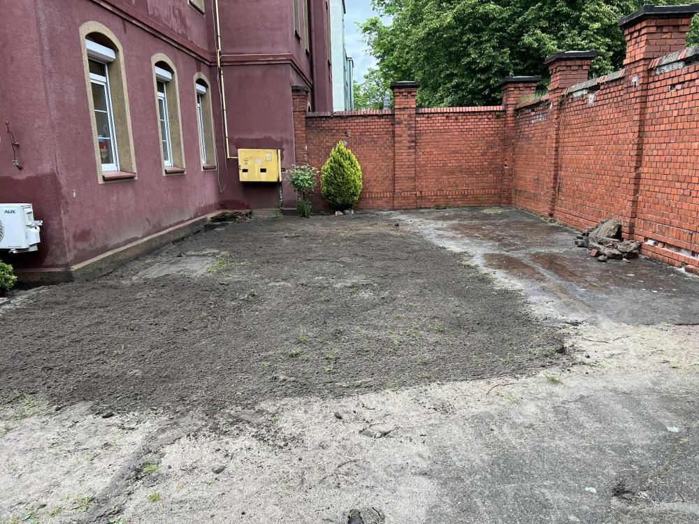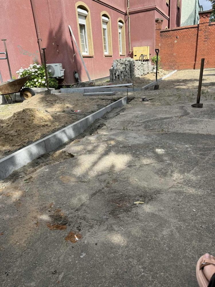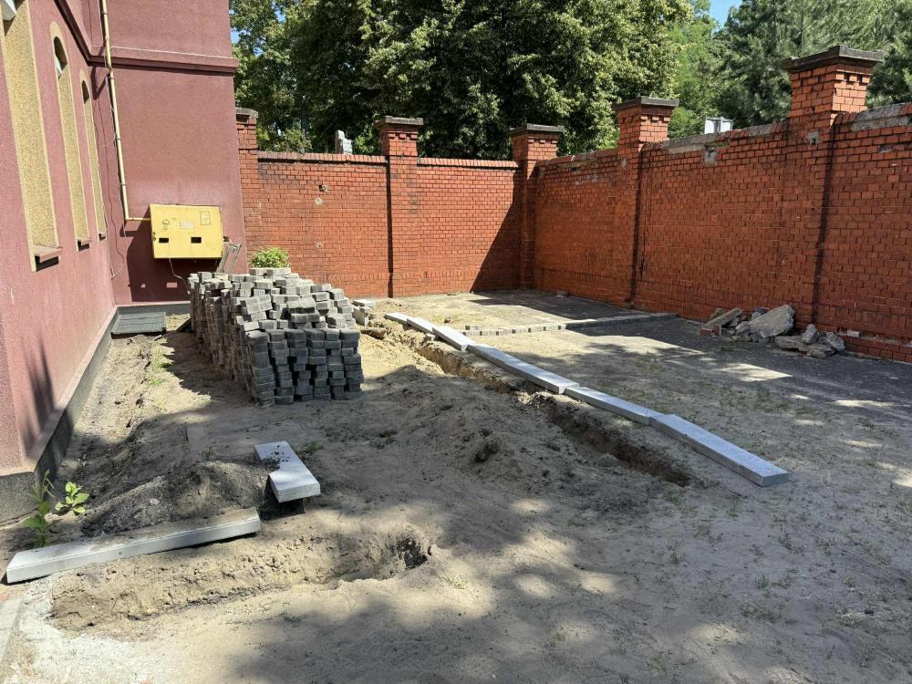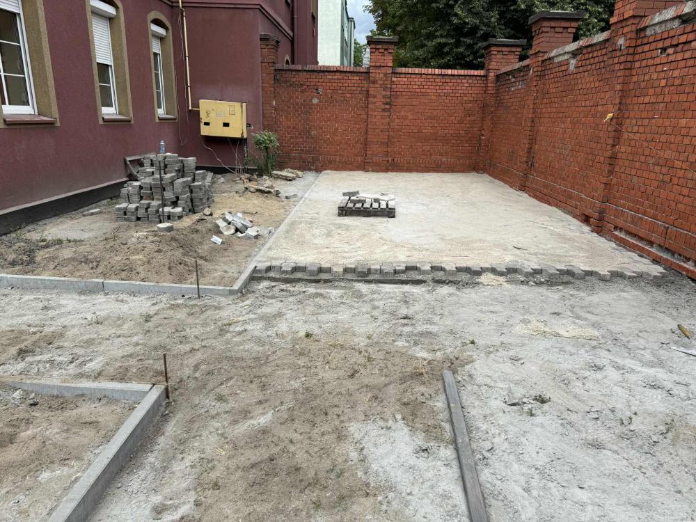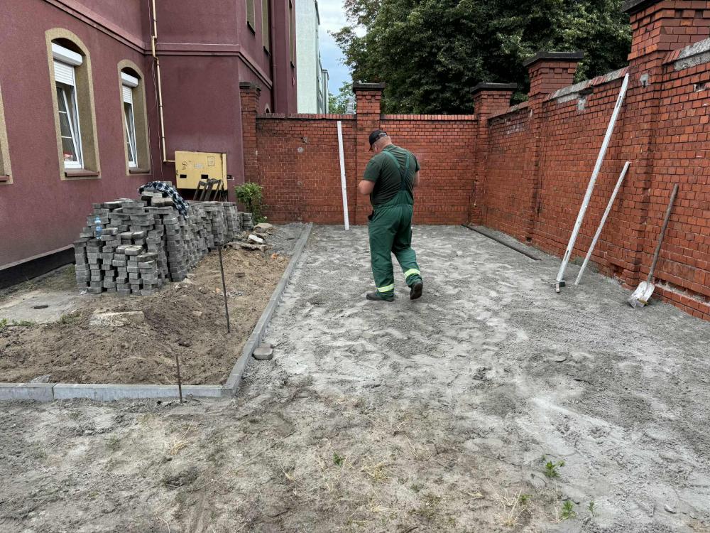 Prace w Ogrodzie Społecznym trwają. Kostka brukowa została dostarczona przez Zakład Usług Komunalnych w Rawiczu. Kolejnym etapem było przeniesienie kostki i przygotowanie terenu do dalszych prac przez osoby odbywające karę pozbawienia wolności w Zakładzie Karnym w Rawiczu.