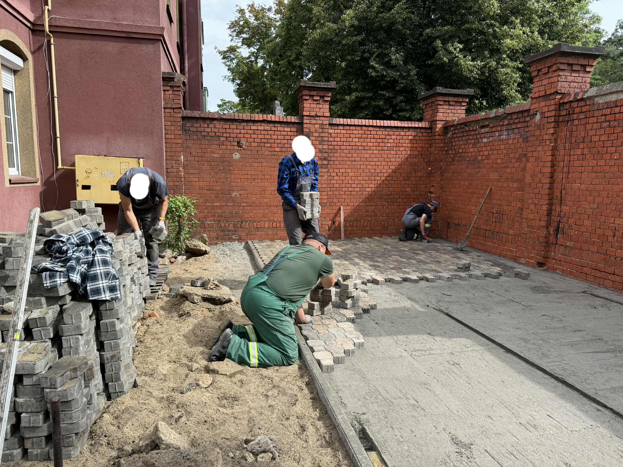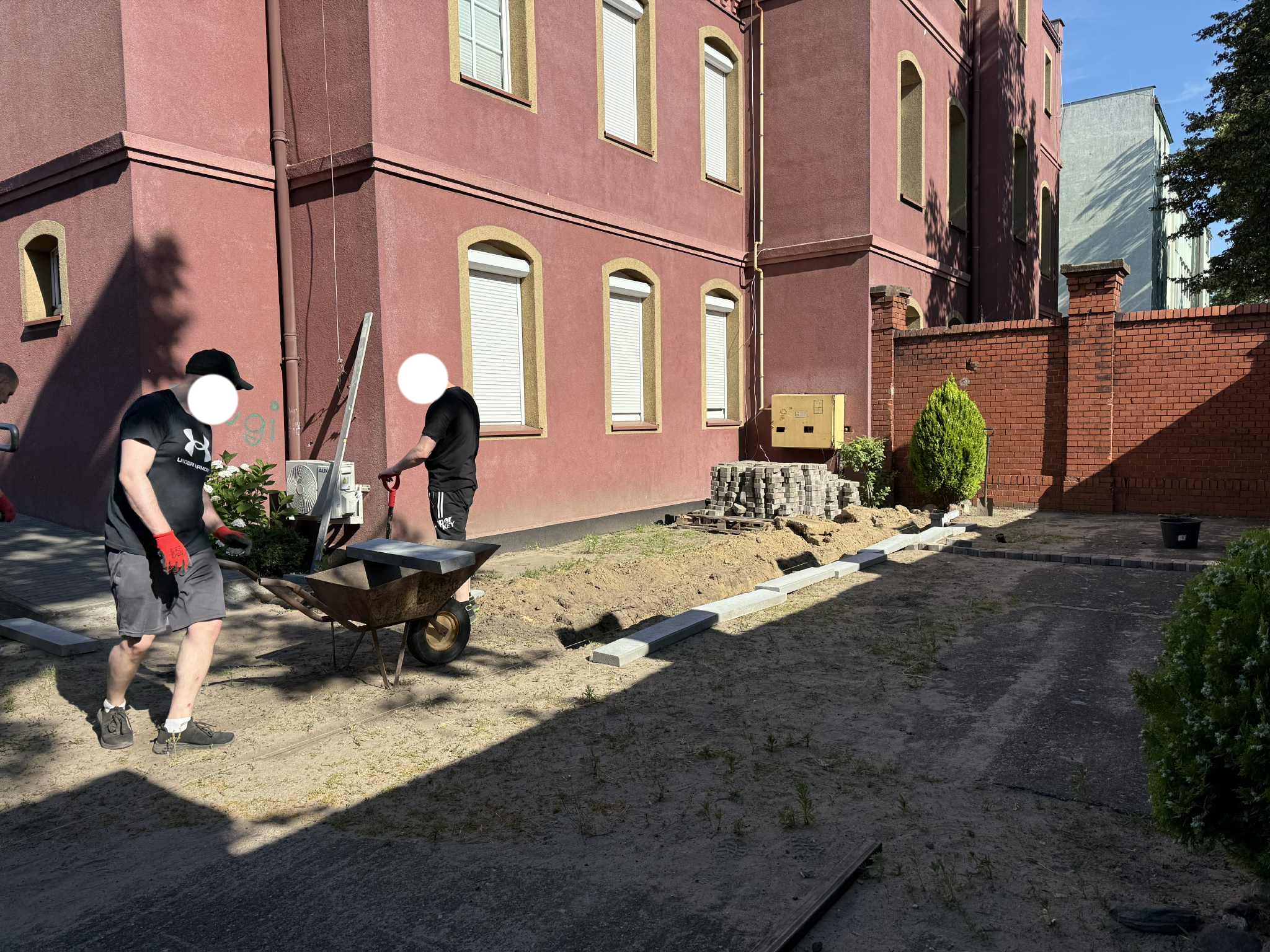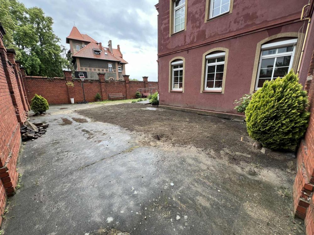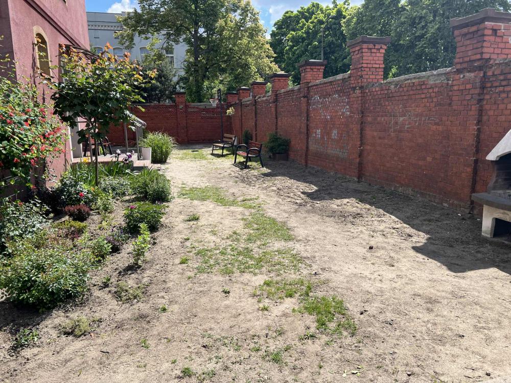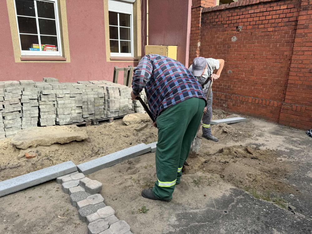 Prace w Ogrodzie Społecznym trwają. Kostka brukowa została dostarczona przez Zakład Usług Komunalnych w Rawiczu. Kolejnym etapem było przeniesienie kostki i przygotowanie terenu do dalszych prac przez osoby odbywające karę pozbawienia wolności w Zakładzie Karnym w Rawiczu.